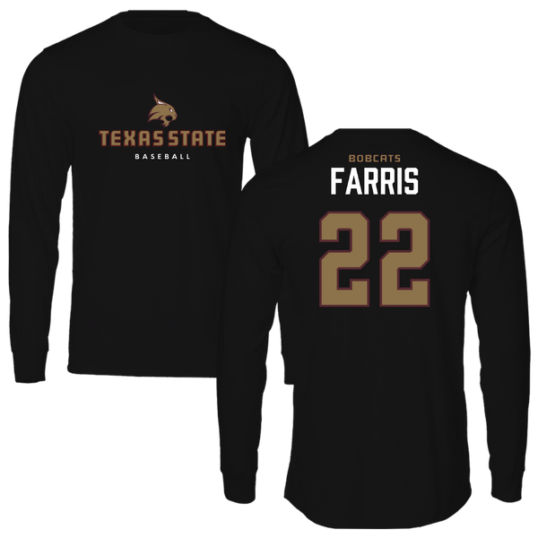 Texas State University Baseball Black Long Sleeve - #22 Ethan Farris