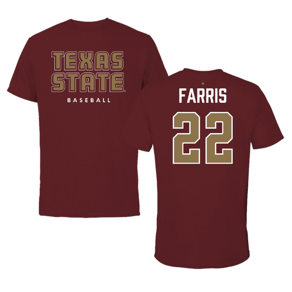Texas State University Baseball Maroon State Tee - #22 Ethan Farris