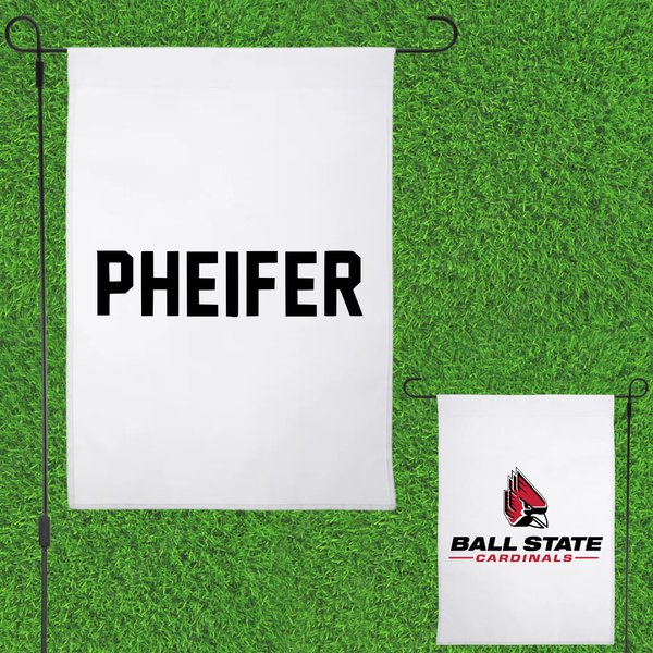 Ball State University Swimming & Diving White Garden Flag - Ethan Pheifer