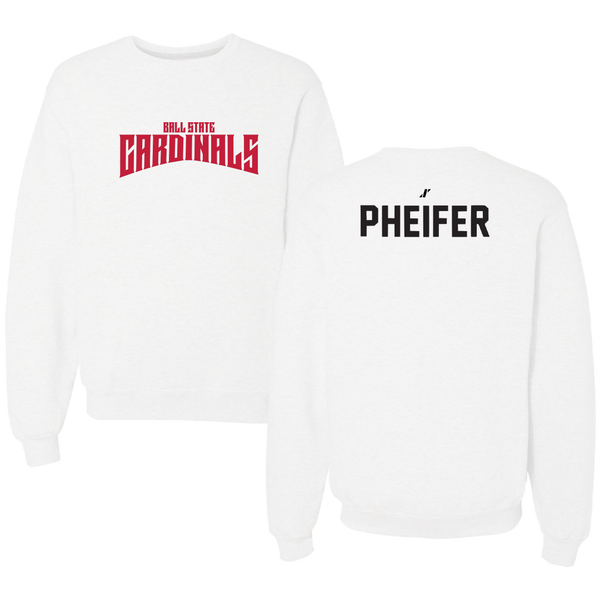 Ball State University Swimming & Diving White Classic Crewneck - Ethan Pheifer