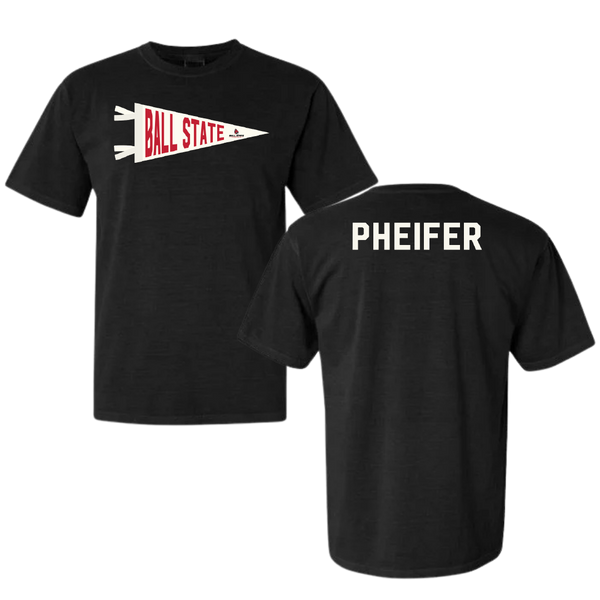 Ball State University Swimming & Diving Black Pennant Comfort Colors Tee - Ethan Pheifer