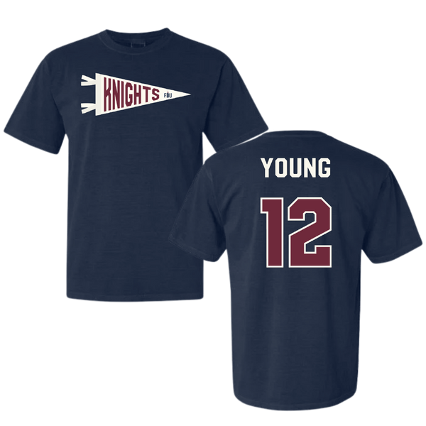 Fairleigh Dickinson University-Metropolitan Campus Volleyball Navy Pennant Comfort Colors Tee - #12 Ethan Young