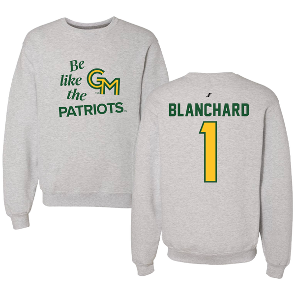 George Mason University Baseball Light Gray Be Like Us Crewneck - #1 Evan Blanchard