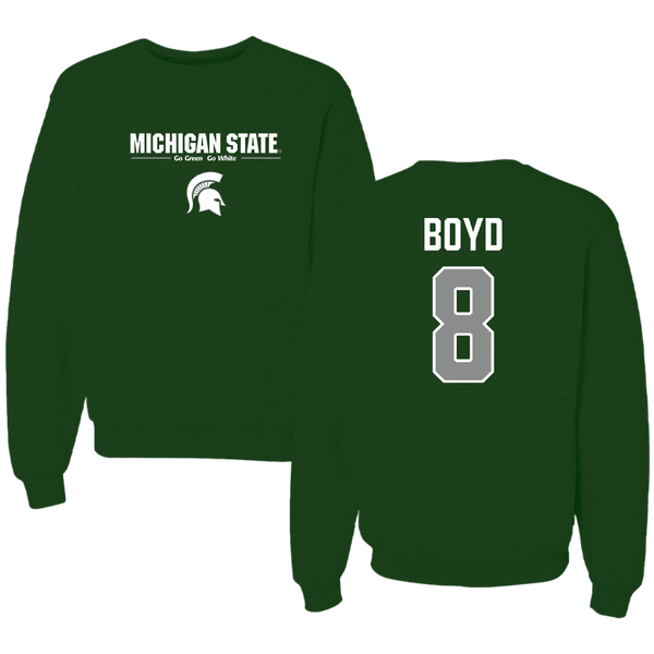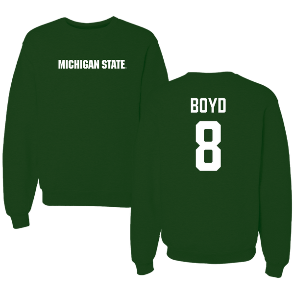 Michigan State University Football Forest Green Crewneck - #8 Evan Boyd