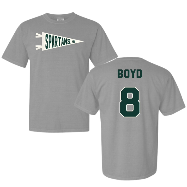 Michigan State University Football Light Gray Pennant Comfort Colors Tee - #8 Evan Boyd