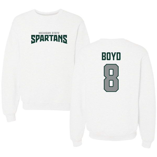 Michigan State University Football White Classic Crewneck - #8 Evan Boyd
