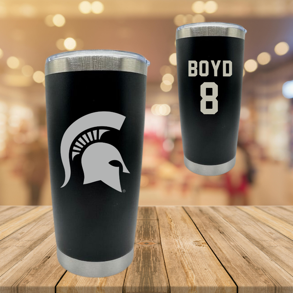 Michigan State University Football Black Stainless Steel Tumbler - #8 Evan Boyd