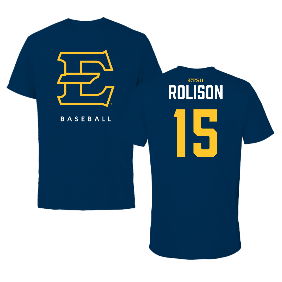 East Tennessee State University Baseball Navy Performance Tee - #15 Evan Rolison