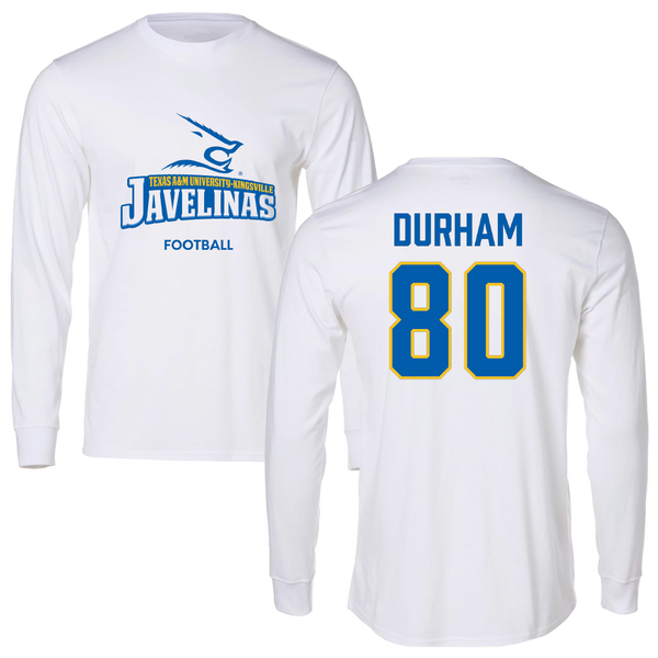 Texas A&M University-Kingsville Football White Long Sleeve - #80 Exavier Durham