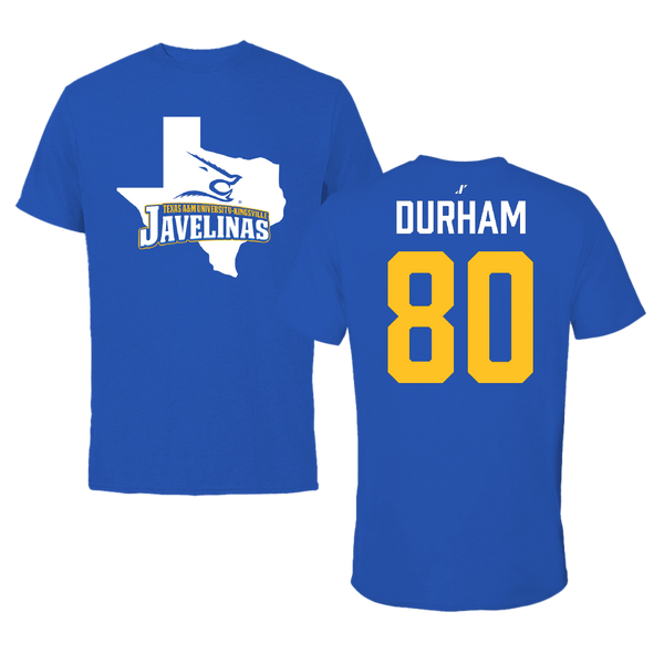 Texas A&M University-Kingsville Football Blue State Tee - #80 Exavier Durham