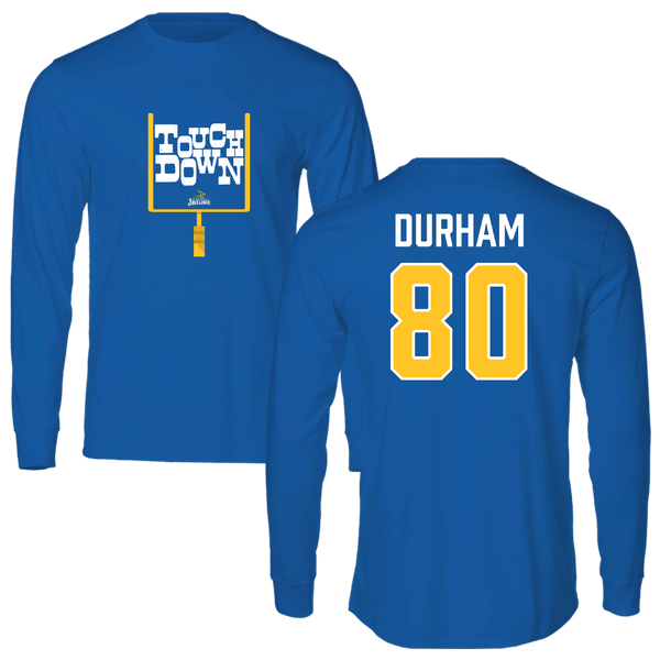 Texas A&M University-Kingsville Football Blue Touchdown Long Sleeve - #80 Exavier Durham