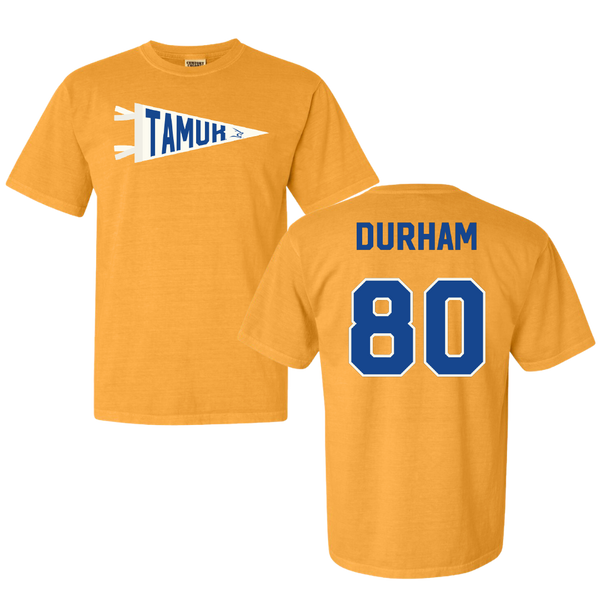 Texas A&M University-Kingsville Football Gold Pennant Comfort Colors Tee - #80 Exavier Durham