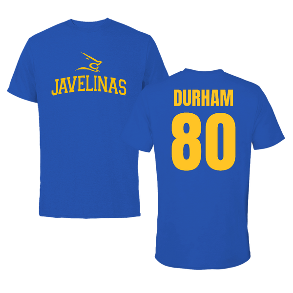 Texas A&M University-Kingsville Football Blue Tee - #80 Exavier Durham