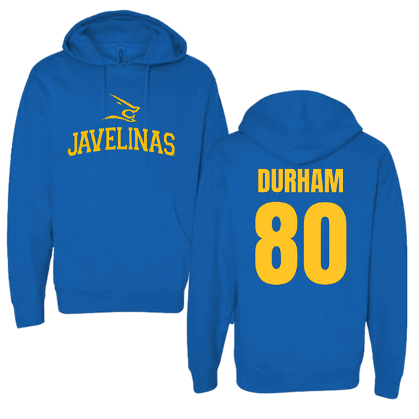 Texas A&M University-Kingsville Football Blue Hoodie - #80 Exavier Durham
