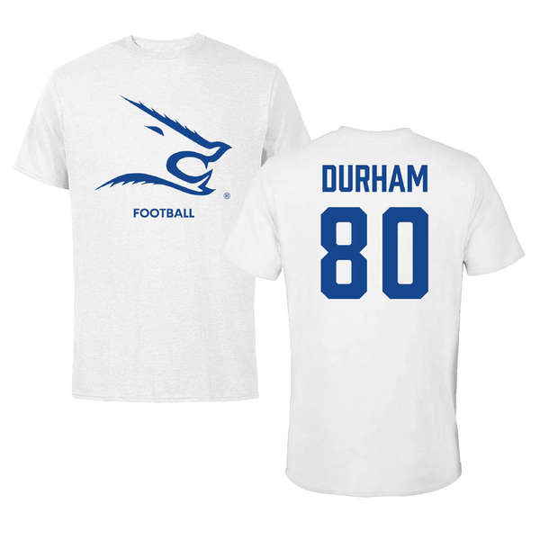 Texas A&M University-Kingsville Football White Tee - #80 Exavier Durham