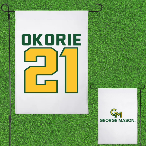 George Mason University Basketball White Garden Flag - #21 Faith Okorie