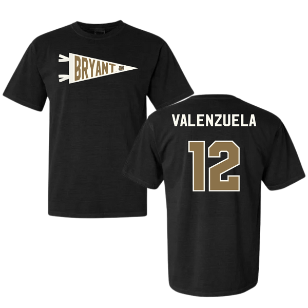 Bryant University Softball Black Pennant Comfort Colors Tee - #12 Faith Valenzuela