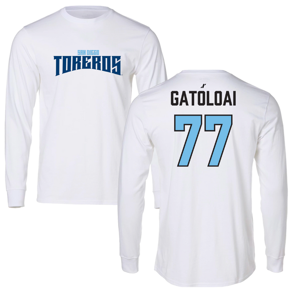 University of San Diego Football White Classic Long Sleeve - #77 Falesalafai Gatoloai