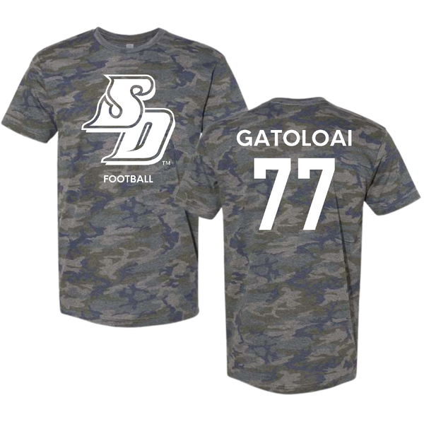 University of San Diego Football Vintage Camo Tee - #77 Falesalafai Gatoloai