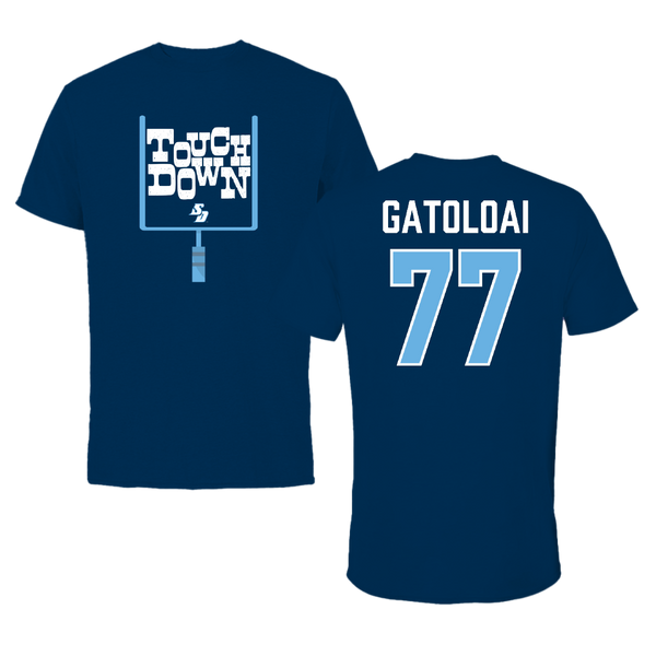 University of San Diego Football Navy Touchdown Tee - #77 Falesalafai Gatoloai