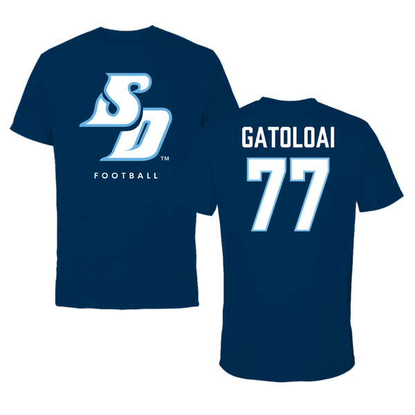 University of San Diego Football Navy Tee - #77 Falesalafai Gatoloai