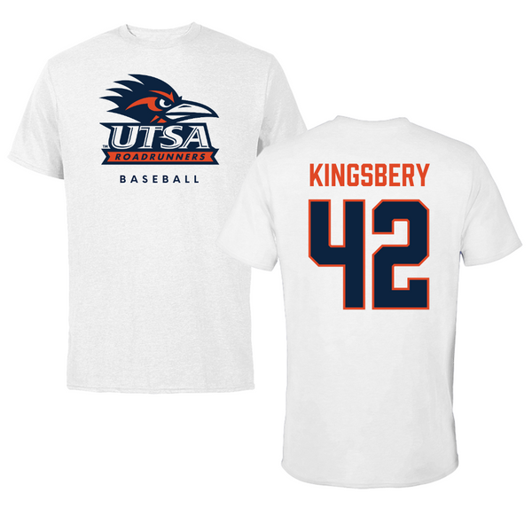 University of Texas at San Antonio Baseball White Classic Tee - #42 Fischer Kingsbery