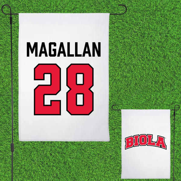 Biola University Baseball White Garden Flag - #28 Gabe Magallan