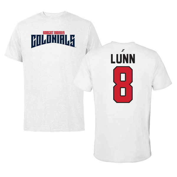 Robert Morris University Ice Hockey White Classic Tee - #8 Gabriel Lunn