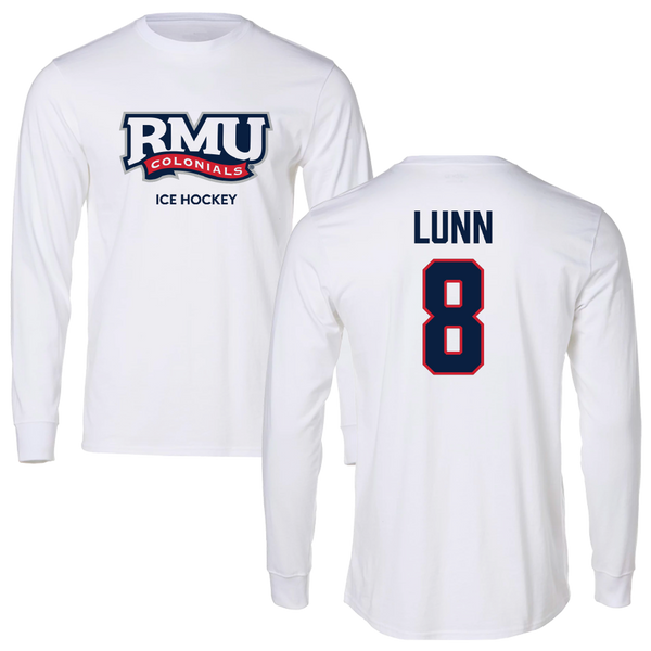 Robert Morris University Ice Hockey White Classic Long Sleeve - #8 Gabriel Lunn