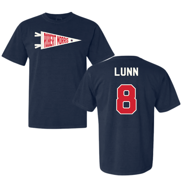 Robert Morris University Ice Hockey Navy Pennant Comfort Colors Tee - #8 Gabriel Lunn