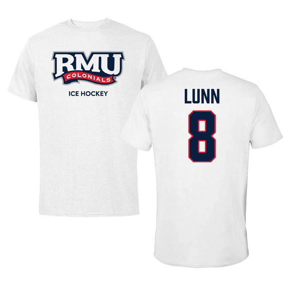 Robert Morris University Ice Hockey (M) White Tee - #8 Gabriel Lunn