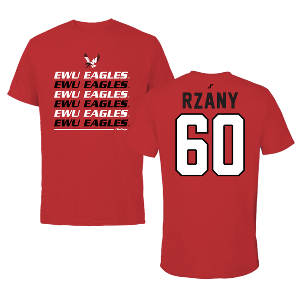 Eastern Washington University Football Red Tee - #60 Gabriel Rzany