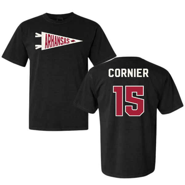 University of Arkansas Volleyball (W) Black Pennant Comfort Colors Tee - #15 Gabriela Cornier