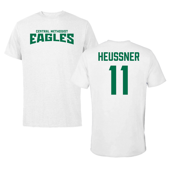 Central Methodist University Basketball (M) White Classic Performance Tee - #11 Gage Heussner