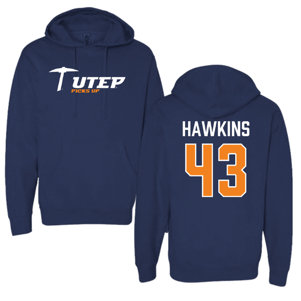 University of Texas at El Paso Football Navy General Hoodie - #43 Garrett Hawkins