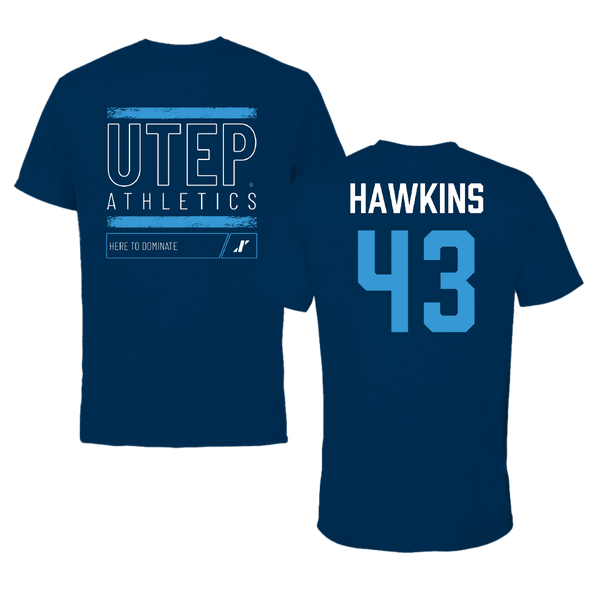 University of Texas at El Paso Football Navy Dominate Tee - #43 Garrett Hawkins