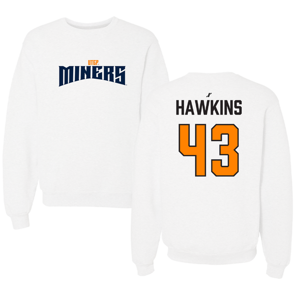 University of Texas at El Paso Football White Classic Crewneck - #43 Garrett Hawkins