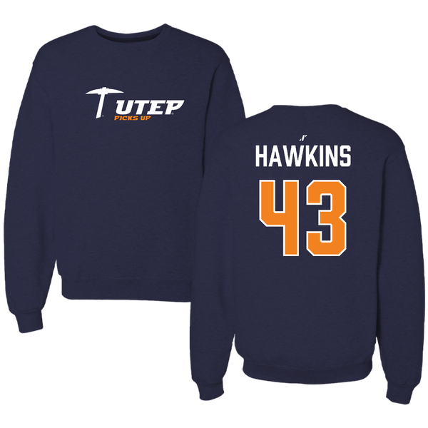 University of Texas at El Paso Football Navy General Crewneck - #43 Garrett Hawkins