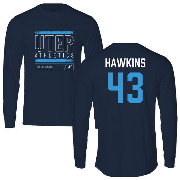 University of Texas at El Paso Football Navy Dominate Long Sleeve - #43 Garrett Hawkins
