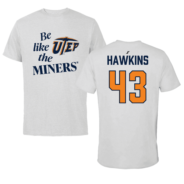 University of Texas at El Paso Football Light Gray Be Like Us Tee - #43 Garrett Hawkins