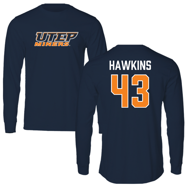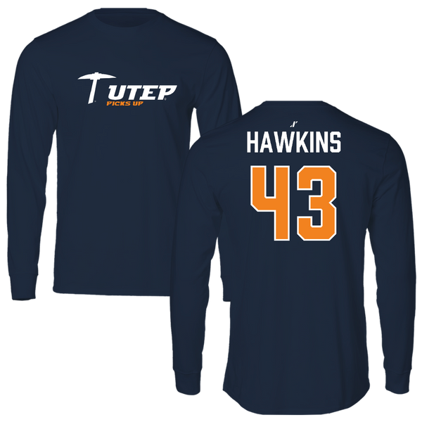 University of Texas at El Paso Football Navy Long Sleeve - #43 Garrett Hawkins