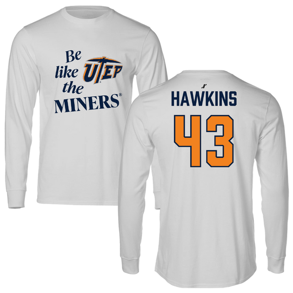 University of Texas at El Paso Football Light Gray Be Like Us Long Sleeve - #43 Garrett Hawkins