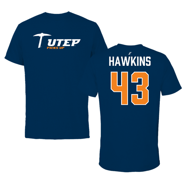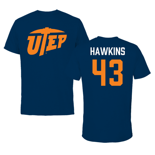 University of Texas at El Paso Football Navy Tee - #43 Garrett Hawkins