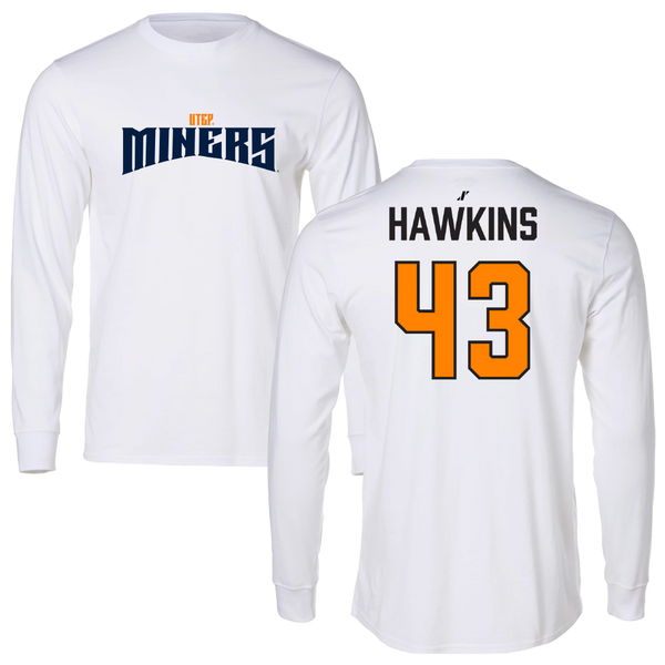 University of Texas at El Paso Football White Classic Long Sleeve - #43 Garrett Hawkins
