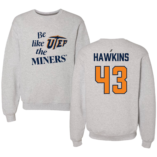 University of Texas at El Paso Football Light Gray Be Like Us Crewneck - #43 Garrett Hawkins