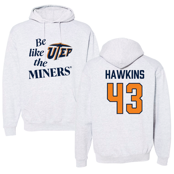 University of Texas at El Paso Football Light Gray Be Like Us Hoodie - #43 Garrett Hawkins