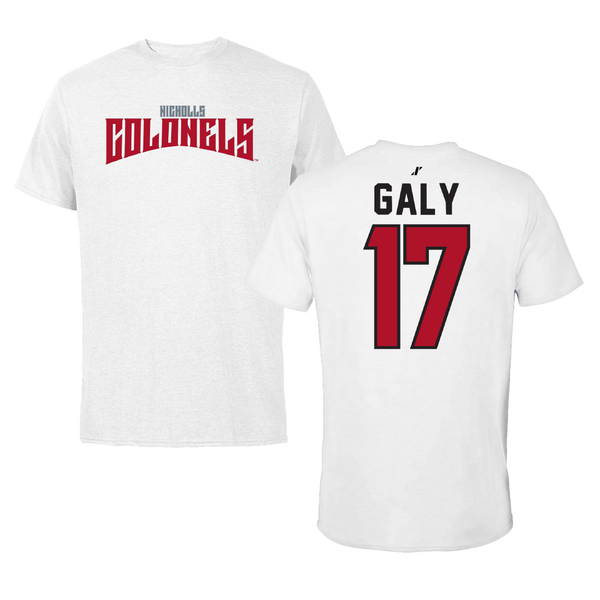 Nicholls State University Baseball White Classic Tee - #17 Gavin Galy