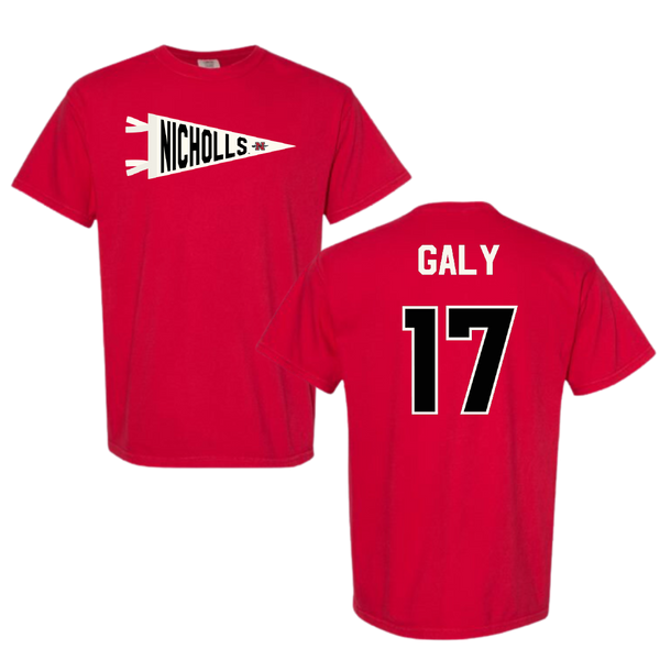 Nicholls State University Baseball Red Pennant Comfort Colors Tee - #17 Gavin Galy