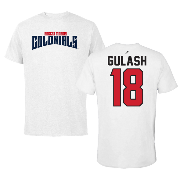 Robert Morris University Ice Hockey White Classic Tee - #18 Gavin Gulash