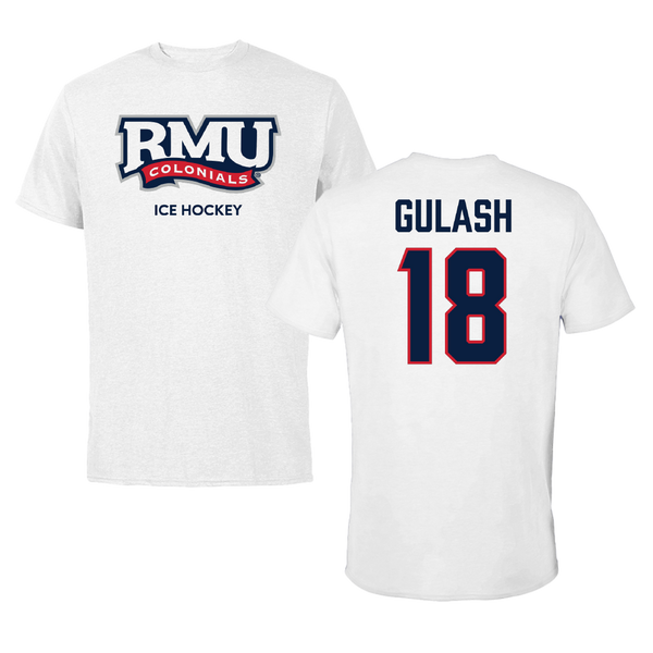 Robert Morris University Ice Hockey (M) White Tee - #18 Gavin Gulash
